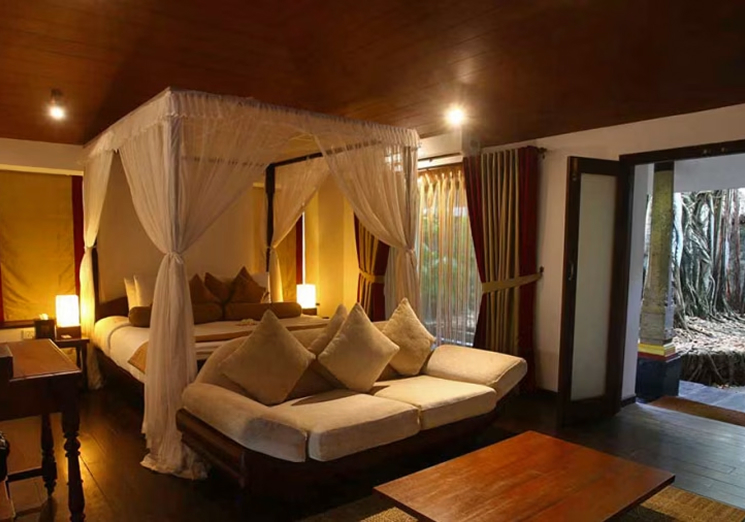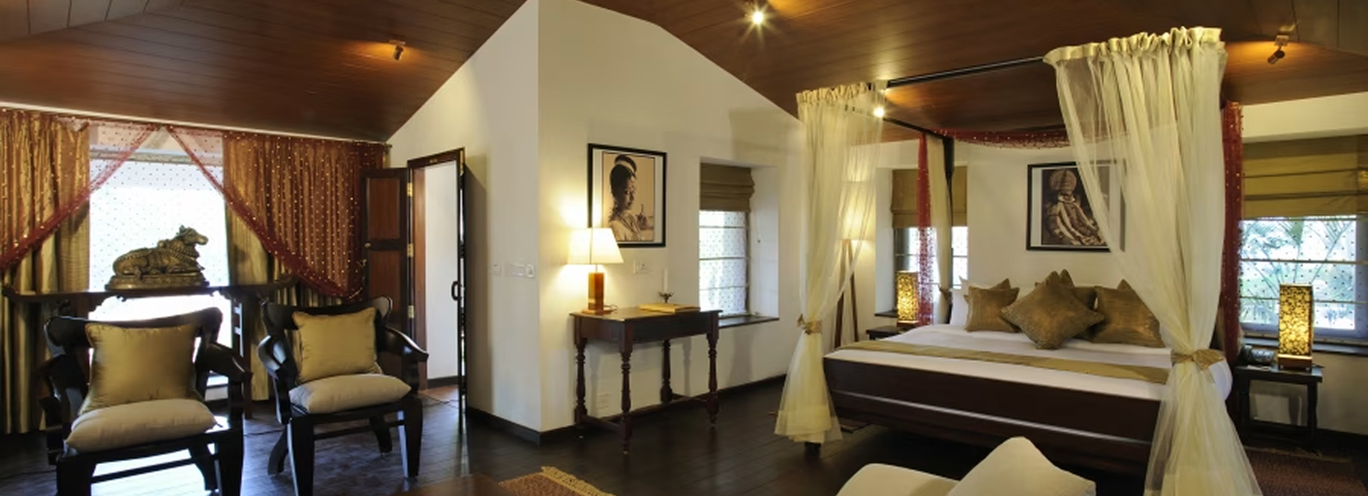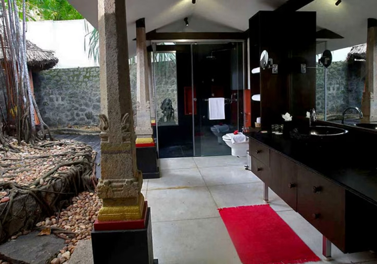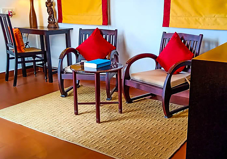 The Banyan Tree Bungalow is the perfect setting for honeymooners and romantic escapes. The bungalow features a private sit out, open-to-sky rain shower. The bungalow is a stand-alone structure with 1,100 sq. ft.. This spectacular bungalow at our resort in Kovalam can accommodate 2 people. Cherish a relaxed vacation as you revel in the services provided at our beach resort in Kovalam.