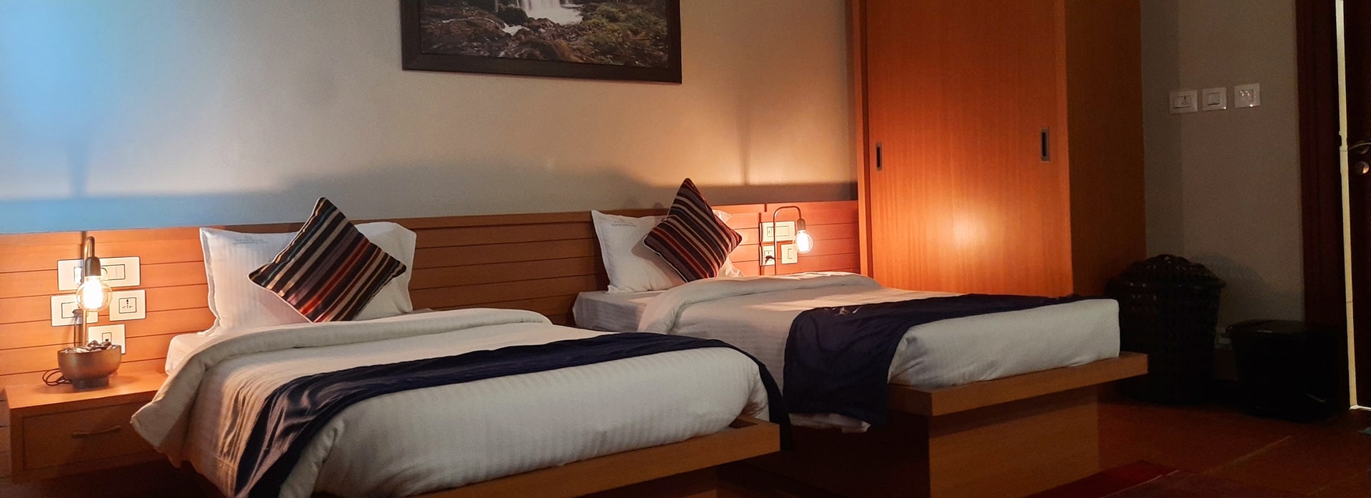 The Deluxe Suites (835 sq. ft.) are luxurious two-bedroom accommodations offering spectacular views of the valley while the interiors reflect the serenity of nature in subtle pastel tones. Each suite features a King Sized and a twin bed living room providing ample space for relaxation and socializing.