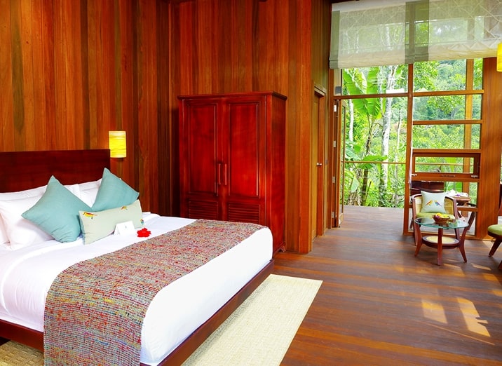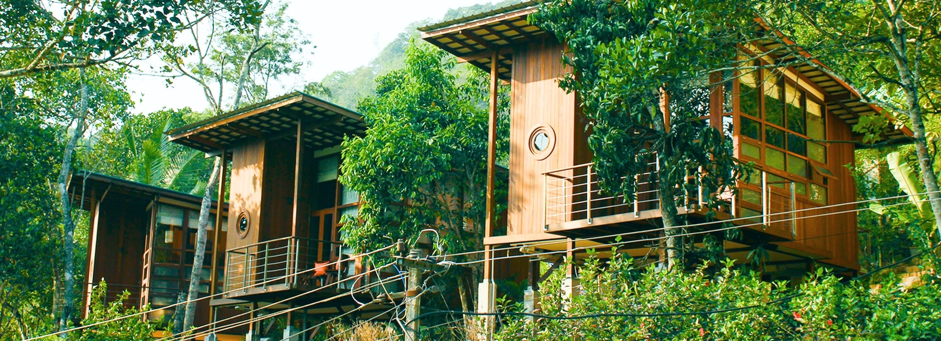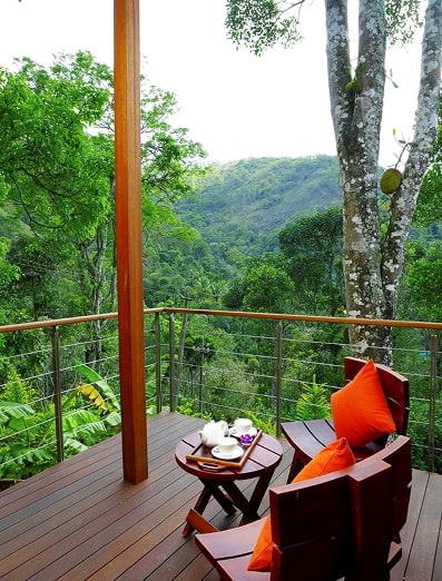 Peek into the fabled Periyar Reserve from the balcony of these cottages built on stilts to maximise the majestic mountain views. The rooms have cleverly positioned floor-to-ceiling windows, so guests can wake up to stunning views of nature, an excellent choice for a romantic escape. Book your stay at these luxury cottages in Thekkady.