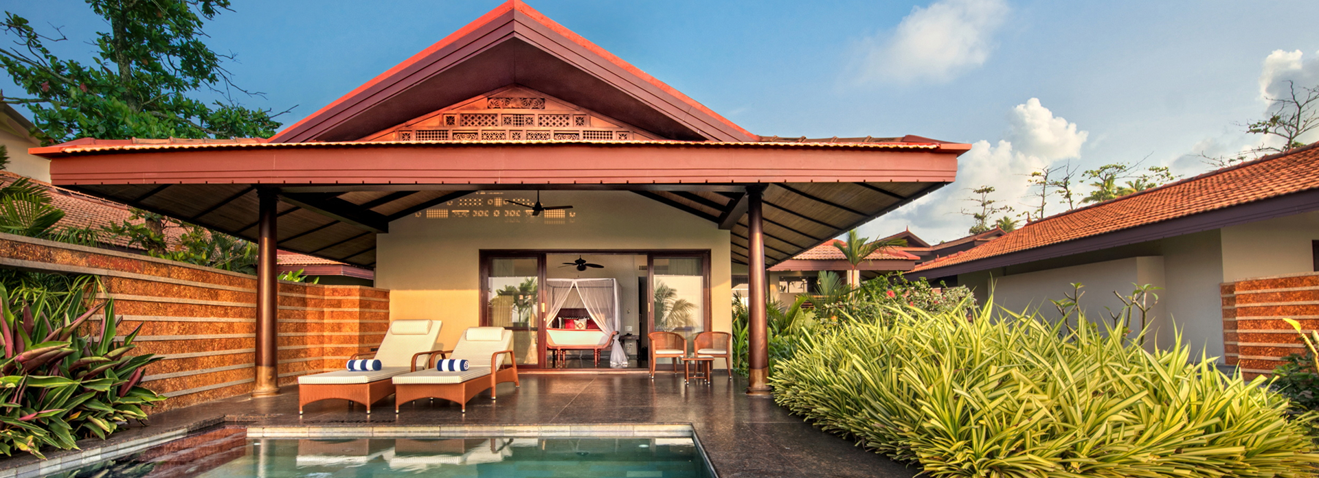 These ultra-luxurious villas at our retreat in Kumarakom flaunt their exclusivity by way of uninterrupted views and direct access to the serene Lake Vembanad. Watch inspiring sunsets at your private sun deck or listen to the soothing ripples of the backwaters from the privacy of your deck loungers. Private plunge pools and luxurious four-poster beds angled to face the lake perfectly tempers the waterfront indulgences. Each villa also offers walk-in wardrobes, luxurious open-to-sky bath gardens with rain showers and indoor bathrooms with bathtubs.