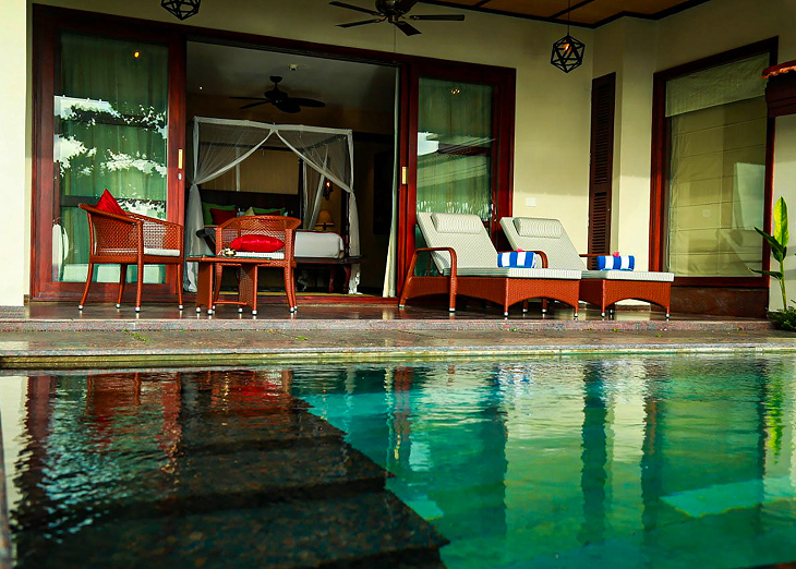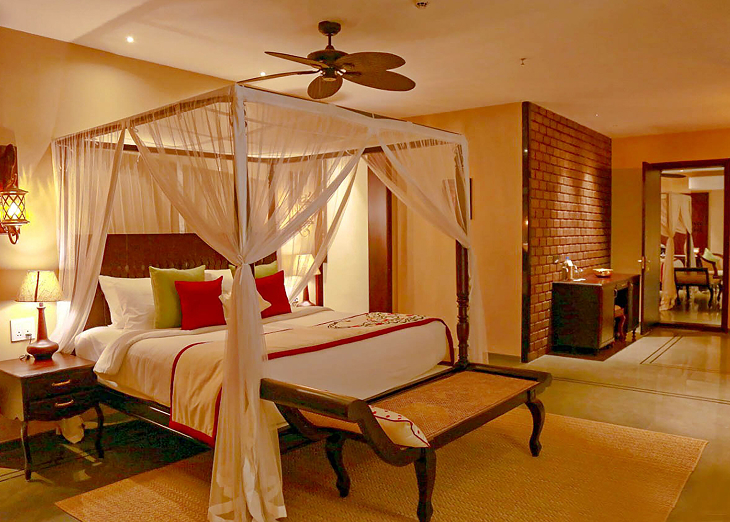 Located on a level above ground, this elegantly appointed sprawling two bedroom luxury suite offers stunning views of the backwaters. Opulent yet gracefully styled, the Presidential Suite has been designed for ultimate indulgences in the most remarkable setting overlooking the lake. The Suite features a dining area, pantry and private balcony overlooking the serene backwaters.
