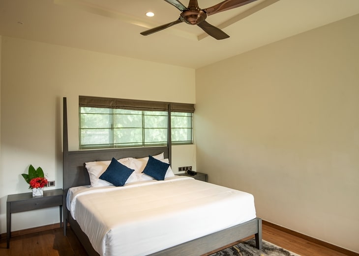 These 475 sq. ft. Deluxe Cottages are set amidst lush greenery teeming with contemporary interiors are a welcoming oasis of calm. These cottages in Thrissur offer a stunning view of the Chalakkudy river and the lush tropical gardens. The interiors reflect the serenity of nature and make you feel one with Athirappilly’s calmness.
